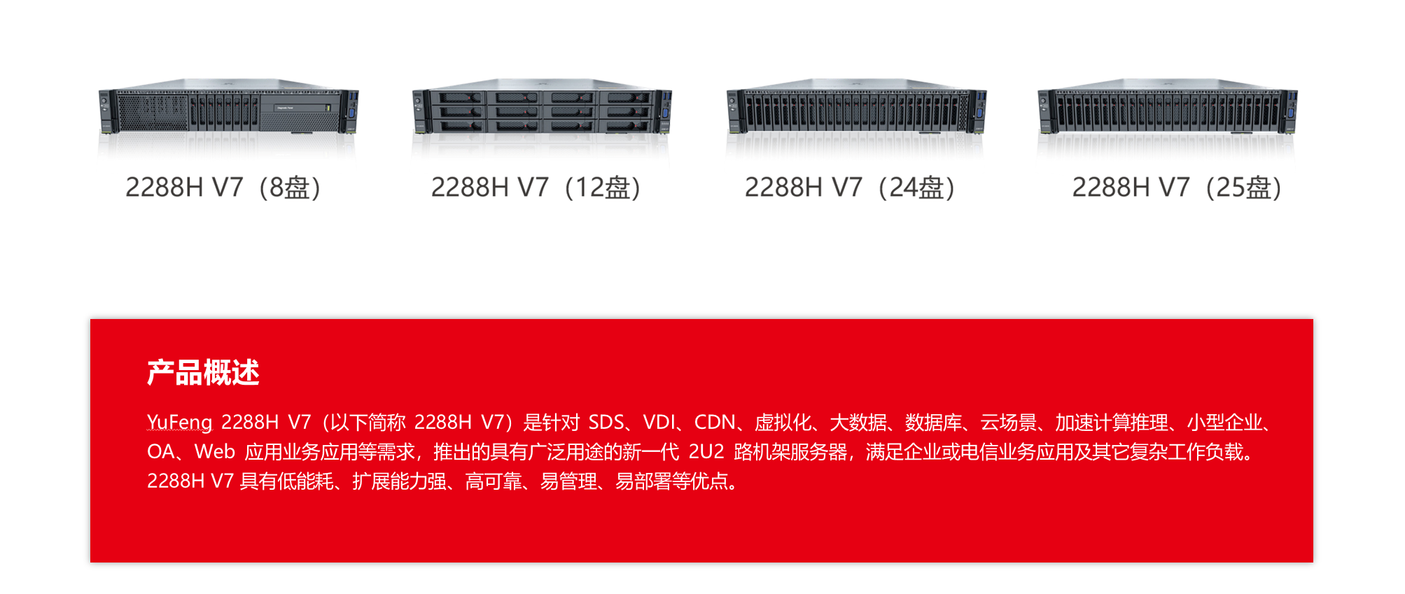 - 稳定可靠:热管拉远散热技术,散热可靠,更强温度适应,单体散热器能力提升50%,业界独有内存故障自愈,保障系统稳定运行,系统宕机率降低66%。